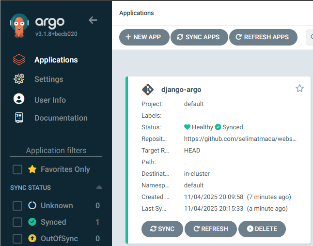 kubectl -n argocd get app django-argo