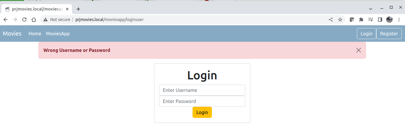 If Logon Fails, we are redirected back to loginuser.html. It will be nice if we generate a message for the user if authentication fails.