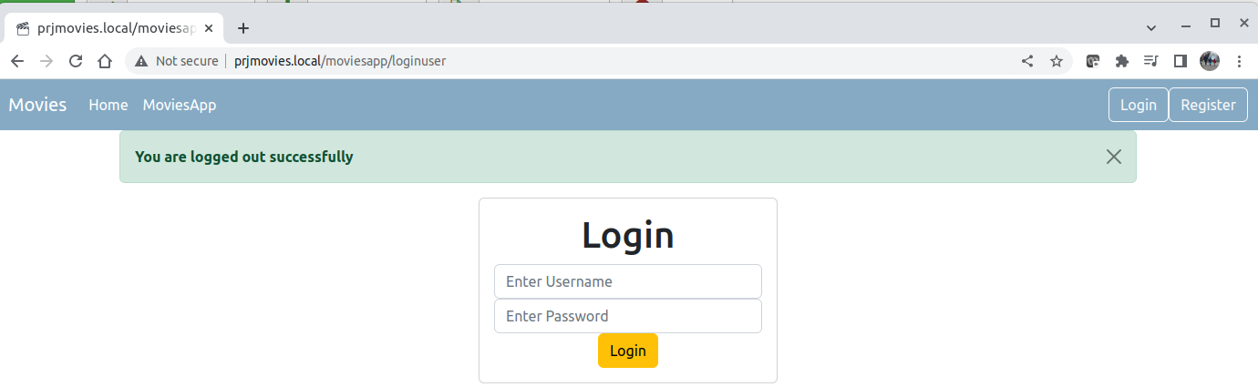 The navigation bar has the button for Log out but it does not have the link. Let's add it.