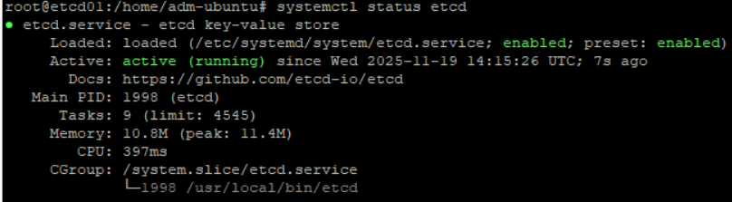 I will create an environment file for ETCD. When ETCD service starts, it will use the parameters that are defined in env file. Initial Cluster state is "New". We will change it to "Existing" later on.