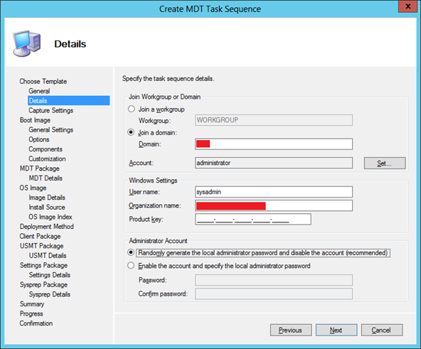 Enter your domain name, specify the user account that will be used while joining computers to the domain.