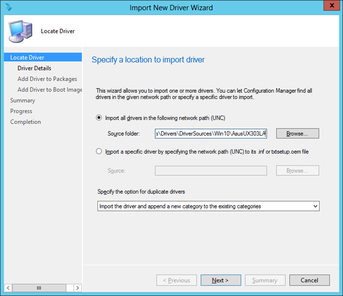 \\SCCMServer\Sources\OSResources\Drivers\DriverSources\Win10\YourComputerModel