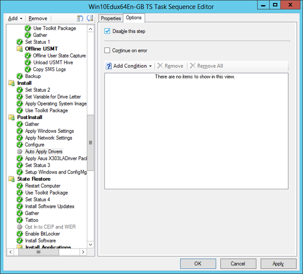 Disable the Auto Apply Drivers Step. We finished the drivers related part for our TS.