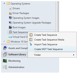 Right click Task Sequences and select Create MDT Task Sequence. If SCCM is not MDT integrated and if you want to integrate them, you can follow the article OSD Part5 - Install and Integrate MDT