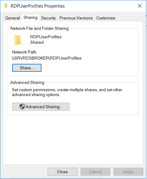 Session Host Servers has to have Full Control permission on this shared folder.