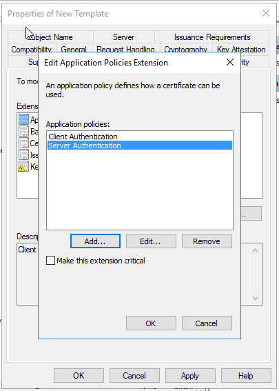 Give a name for this new application policy. Object identifier for Remote Desktop Authentication is : 1.3.6.1.4.1.311.54.1.2